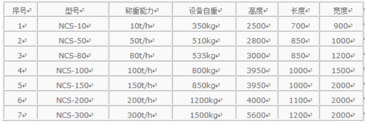 中間計量秤SW-NCS技術(shù)參數(shù):