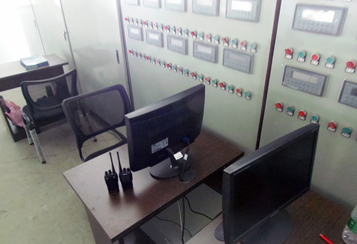 B、整體設備帶故障檢測系統,后段設備故障,前段設備自動停止。并顯示故障點位置和原因,用報警燈顯示系統運行狀態(運行、故障、停止)。