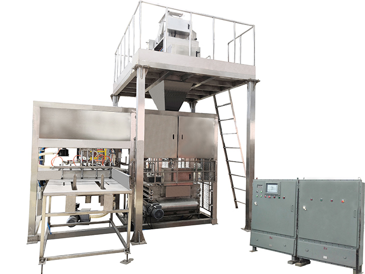 新型全自動包裝機主要有自動上袋機、自動定量稱量設(shè)備、自動折邊縫包機、自動輸出設(shè)備組成。全自動包裝機主要完成被包裝物料的自動上袋、對物料的重量進行自動稱重并填袋、輸送機將填充好的包裝袋輸送到折邊縫包處對包裝袋進行自動折邊縫包,后由輸送機將包裝袋輸送到碼垛機處進行碼垛作業(yè)。整個過程全部由全自動包裝機自主完成,中間不需要人工參與。真正實現(xiàn)解放生產(chǎn)力,降低企業(yè)成本。該全自動包裝機已獲得國家實用新型發(fā)明專利,并獲得多項技術(shù)專利,獨有的包裝機除塵裝置,使企業(yè)生產(chǎn)環(huán)境更加舒適。